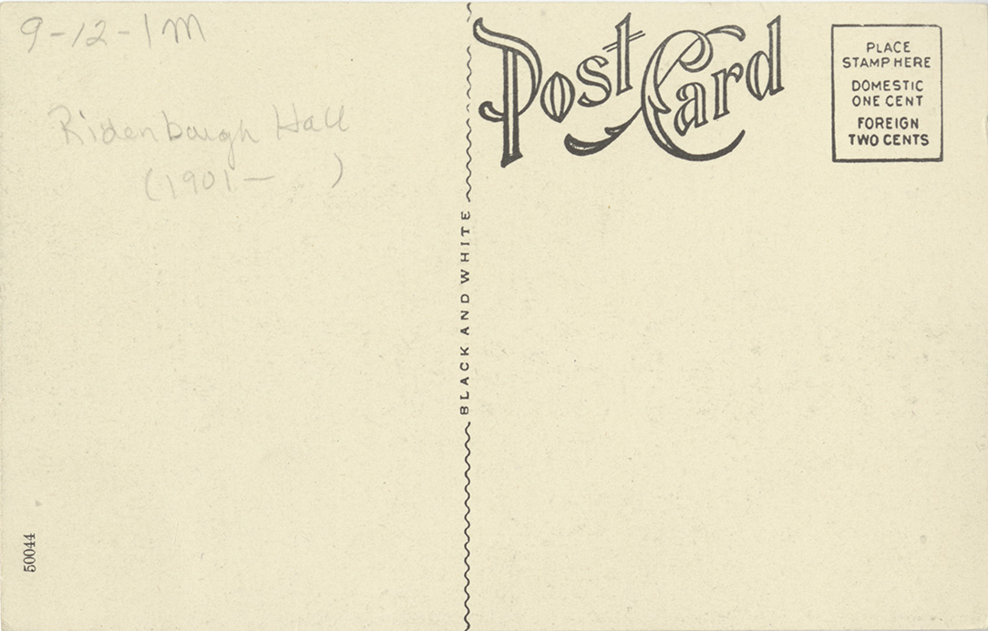 - Postcard of a women's dormitory (now Ridenbaugh Hall) at the University of Idaho campus in Moscow, Idaho.