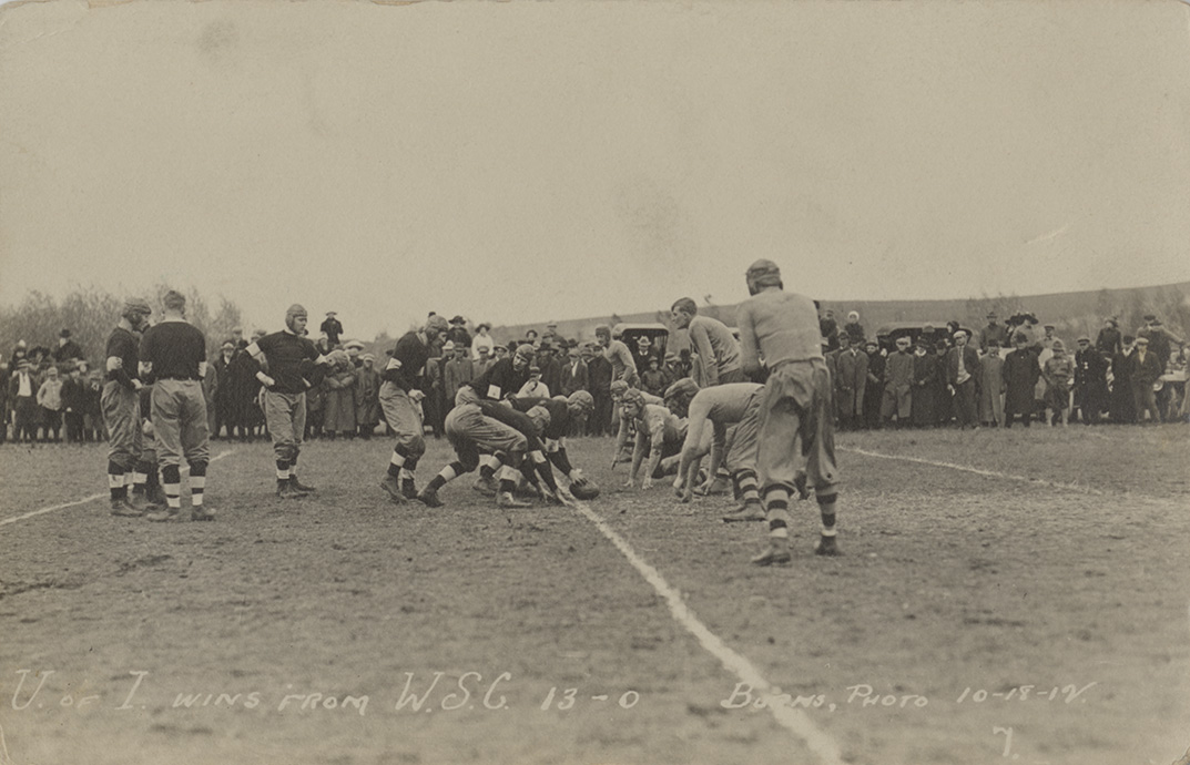 - Postcard of a football game between the University of Idaho and Washington State College in 1912.