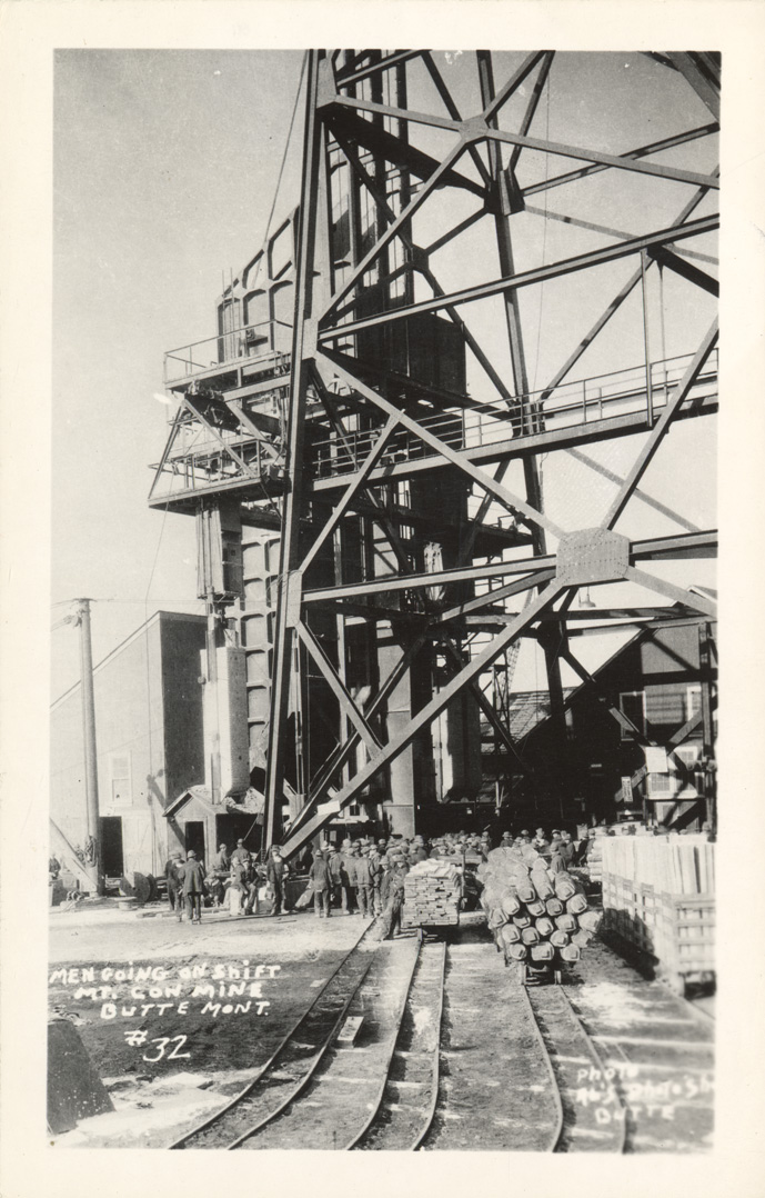 - Postcard of men at a mine in Butte, Montana.