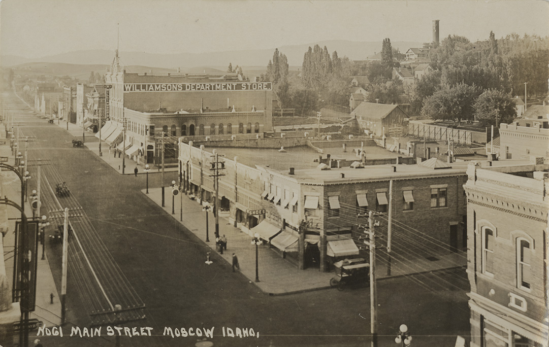 - Postcard of main street Moscow, Idaho.